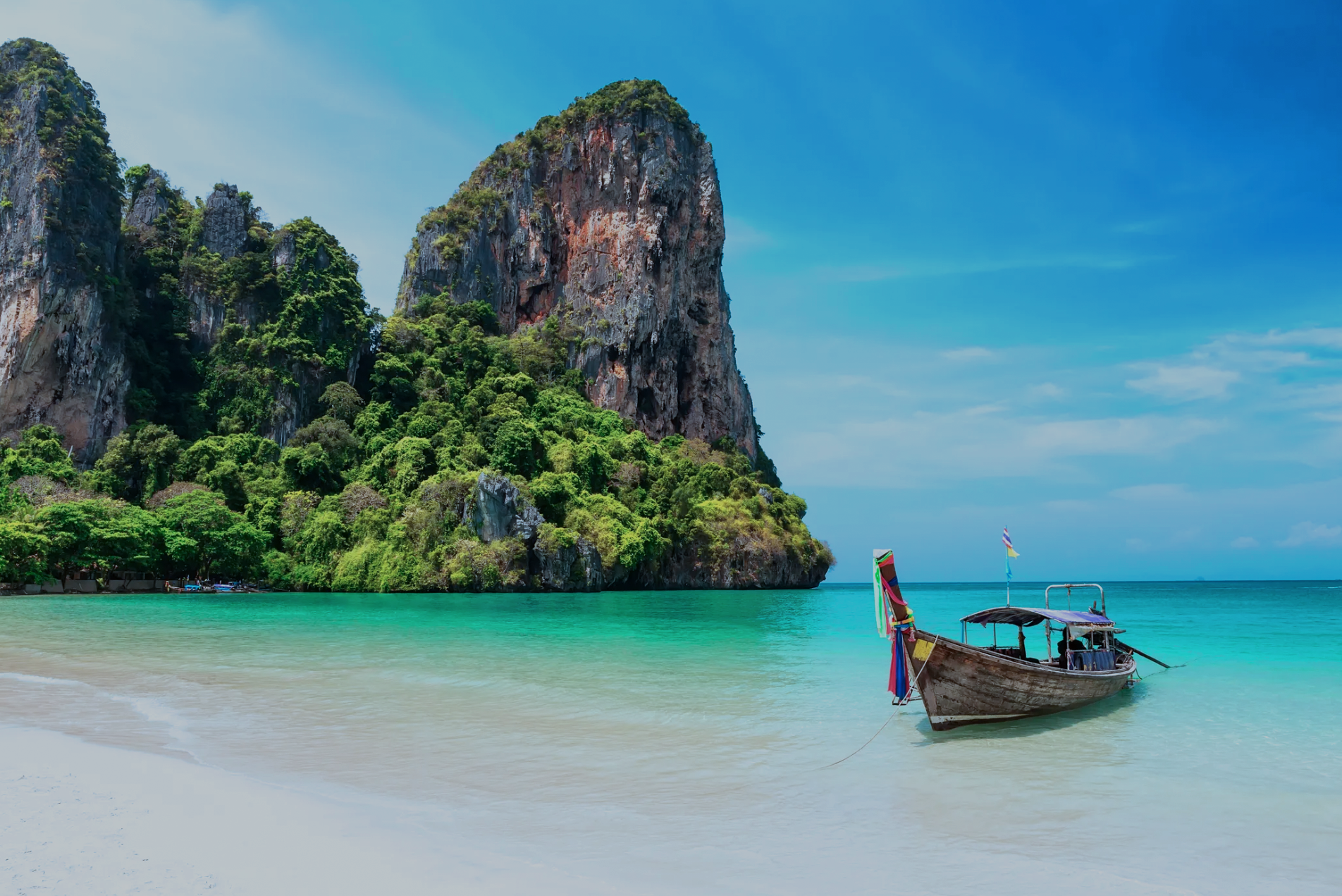Escape to the stunning shores of Krabi, Thailand, where towering limestone cliffs meet turquoise waters and pristine beaches. From the iconic Railay Beach to the serene Phi Phi Islands, Krabi offers an unforgettable adventure with breathtaking scenery and vibrant coral reefs ideal for snorkeling or diving.
